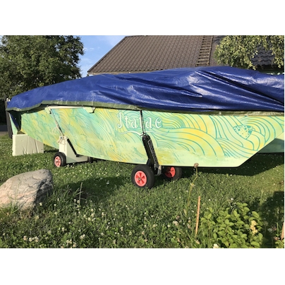 Wharram Tiki 21 with road trailer for sale! End-of-Season Price (trailer incl.): 6900.- € Launched 2018, well kept, first owner. More info, photos & videos: http://itatae.eu Tiki 21 is indeed a little sturdy and versatile cat, excellent for coastal hopping, but likewise all Wharram designs its pretty seaworthy in all sorts of conditions. Dyneema lines (halyards, shroud & fore stay lashings etc) and spectra beam lashings. Sturdy mainsail (with 3 reef lines) and jib (with 1 reef line). Mooring line, fenders and decent anchor. Beach trolleys for launching. Construction: West System Epoxy, Okume plywood, Douglas fir and Hemlock. Hulls sealed outside with 200 g plain weave (keels have 3 layers), everything inside is sealed with 2-3 layers of epoxy. Beams are sealed with 2-3 layers of epoxy. Hulls, beams and main deck is coated with 2-4 layers of extra durable Tikkurila Temadur & Temacoat rm 40 two part paints. Decks have Precision anti-slippery covers. Some areas have few extra layers of one part polyurethane paint. Contact: +372 56 88 0 949 // wetland@planet.ee Contact me for a live video tour around the boat (via WhatsApp, Google Meet, FaceTime etc.). Located: Estonia // Delivery is possible according to agreement. |