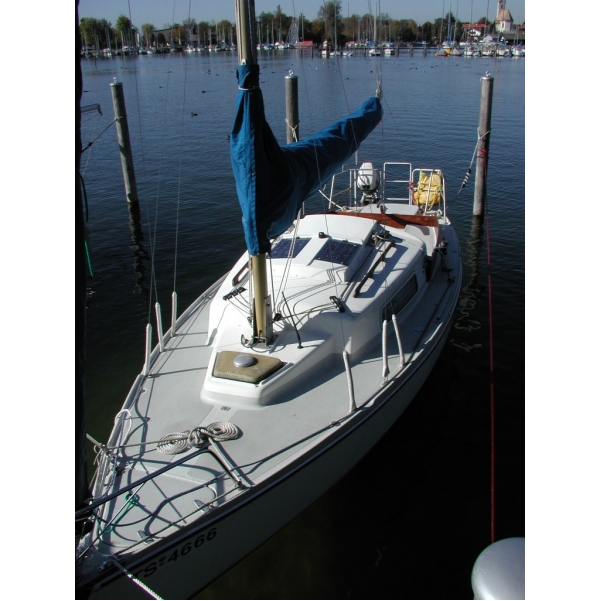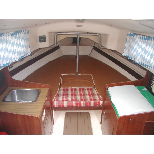 Das Segelboot ist natürlich nicht neu, aber in einem guten Zustand, das Unterwasserschiff (Antifouling) könnte neu gemacht werden, muß aber noch nicht sein. Das Deck ist leicht gekräkelt, aber wen das nicht stört der segelt noch sehr viele Jahre. |