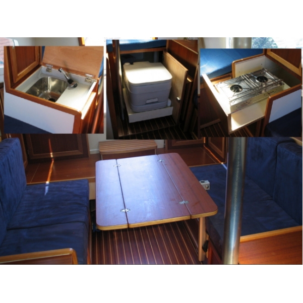Innenausb., Elektrik, Ladegerät u. Gelbatterie 2003 neu, Spüle, Chemie WC, Herd, AB (`95) im Achterkasten, Bodenseezul.,/ Straßentrailer 2t, Bj.87, 1900 €. |