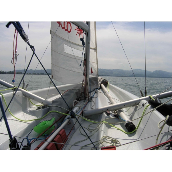 Fock 3,9 m2, Großsegel 10,8 m2, Gennaker 17,1 m2.