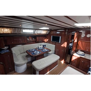 Ocean Star yachts are recognized for their strength and sailing capabilities world wide. Safety on board is a fundamental consideration, which is illustrated by the traditional methods of hull lamination, where the bulkheads are structurally reinforced and the GRP girder grid system is bonded underneath the entire surface and hull’s full perimeter to ensure extra strength and solidity. All of the hulls are laminated by hand and molded internally, while special attention is given to detail during production. The Ocean Yachts boatyard and its 40 person, strong workforce are located in Kalivia, 50 km from the center of Athens. The boatyard is built to allow the combination of traditional craftsmanship and semi custom production and has the capacity to manufacture up to 15 yachts a year. http://www.ocean-yachts.com/ Navigation Equipment Cruising Charts, Cruising Guide (waters pilot), Lights House Book, Binoculars, Divider, Parallel ruler, GPS Plotter, V.H.F., Radio-CD, Depth Sounder, Speedometer, Wind instruments, Hand-bearing Compass. Deck Equipment Electric anchor windlass, Cockpit table, Cockpit shower, Steering wheel/Tiller, Dinghy with Outboard motor, Fenders, Compass, Speed log, Wind instruments, Swimming ladder, Electric boarding ladder. Sails Roller furling Genoa, Fully Battened Main Sail, Bimini, Spray Hood, Single line reef equipment. Standard Equipment Yacht Operations Manual, Engine Manual, Tool Kit, Spare parts. Additional Equipment Cockpit Speakers, Autopilot, Cockpit cushions, Battery charger. Safety Equipment First Aid Kit, Life Jackets, Bosun's Chair Flares, Life Raft, Safety Harnesses
